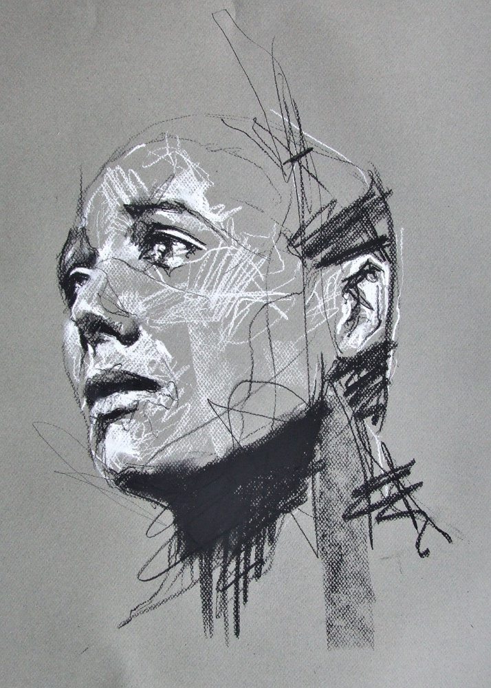 ‘somme’, conte and chalk on paper, 50 x 65cm