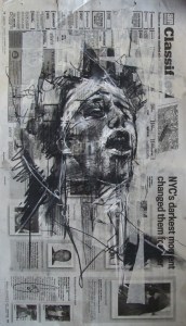 occupy-wall-street-the-sound-of-free-speech-conte-and-pastel-on-newsprint-30-x-54cm