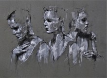 ‘aggression, competition, ambition’, conte and chalk on paper, 50 x 66 cm