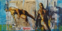 ‘to say goodbye’, oil and collage on canvas, 100 x 50 cm