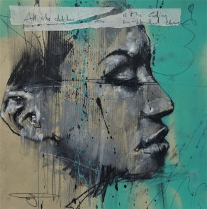 12 ‘All she clutches now is the fading sun-bleached dream’, pastel and spraypaint on paper, 23 x 23 cm