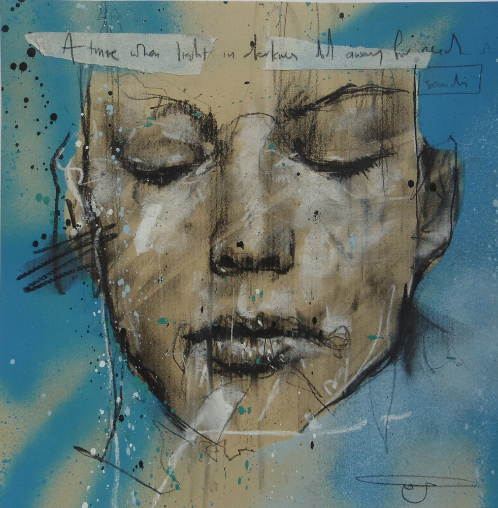 24 ‘A time when light in darkness did away for needs of sounds’, pastel and spraypaint on paper, 23 x 23 cm