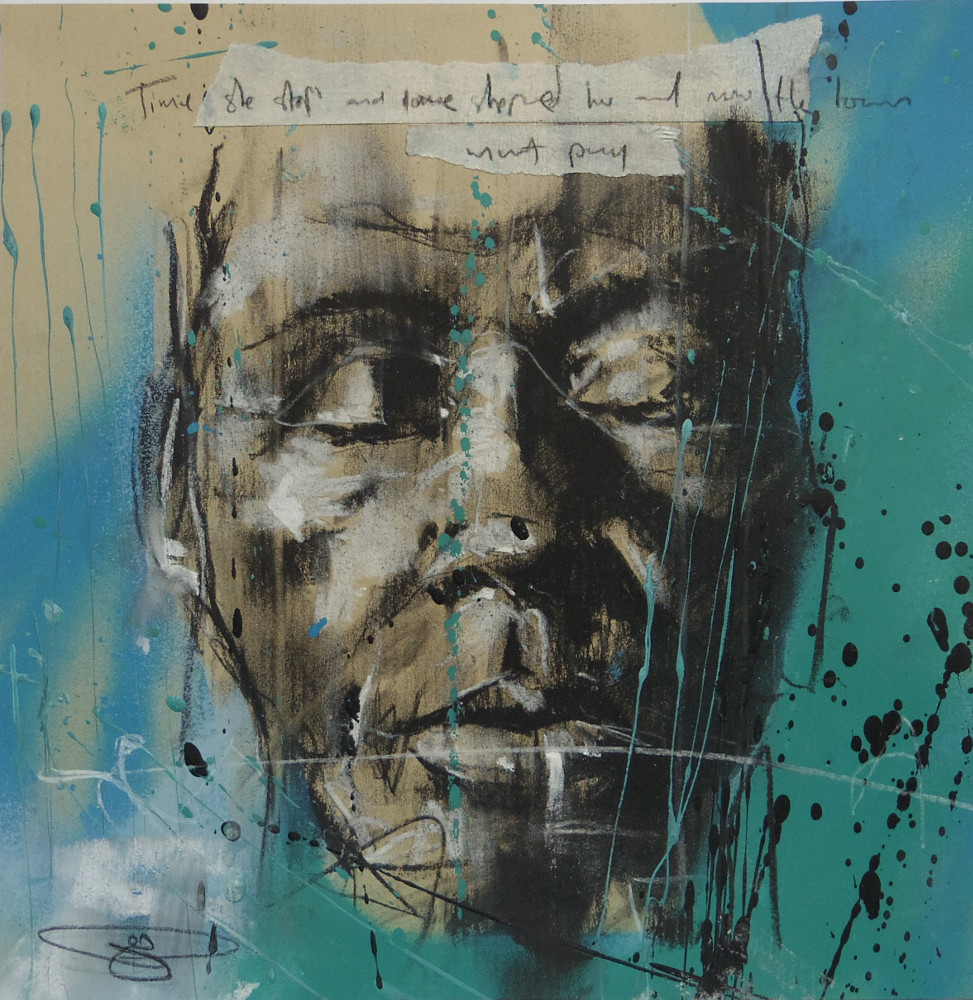 27 ‘Time she stops and time stopped her and now the town must pay’, pastel and spraypaint on paper, 23 x 23 cm