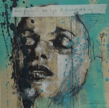 31 ‘ever frozen in lost myth of L_important est de ne jamais désespérer’, pastel and spraypaint on paper, 23 x 23 cm