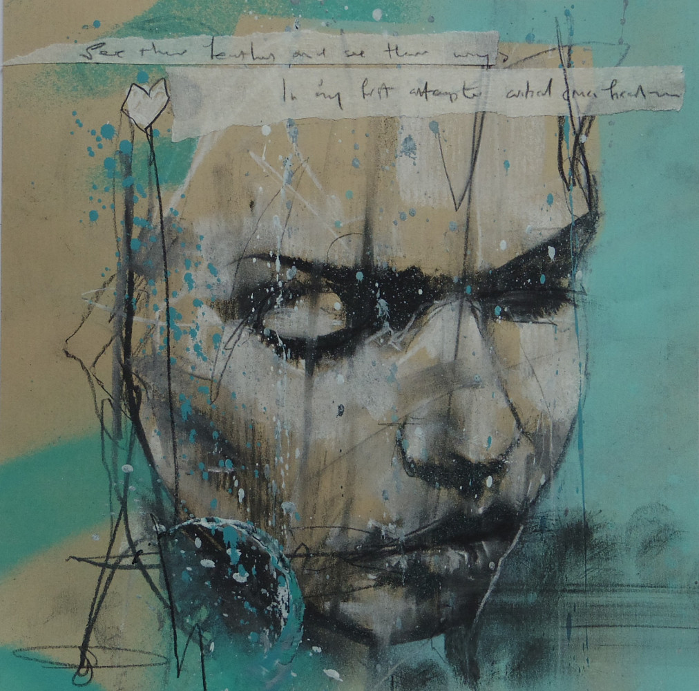 35 ‘See their feathers and see their wings. In my first attempted critical crucifixation’, pastel and spraypaint on paper, 23 x 23 cm