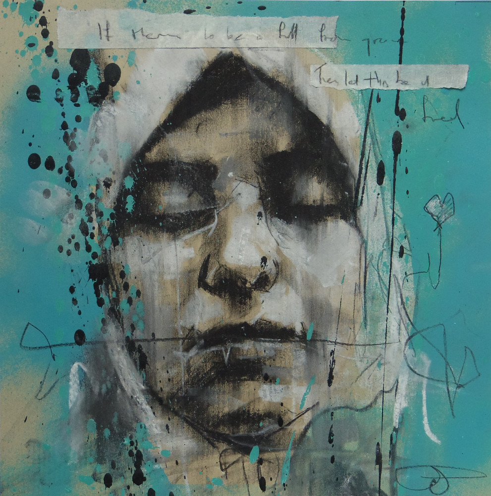 36 ‘If there’s to be fall from grace. Then let this be it freed’, pastel and spraypaint on paper, 23 x 23 cm