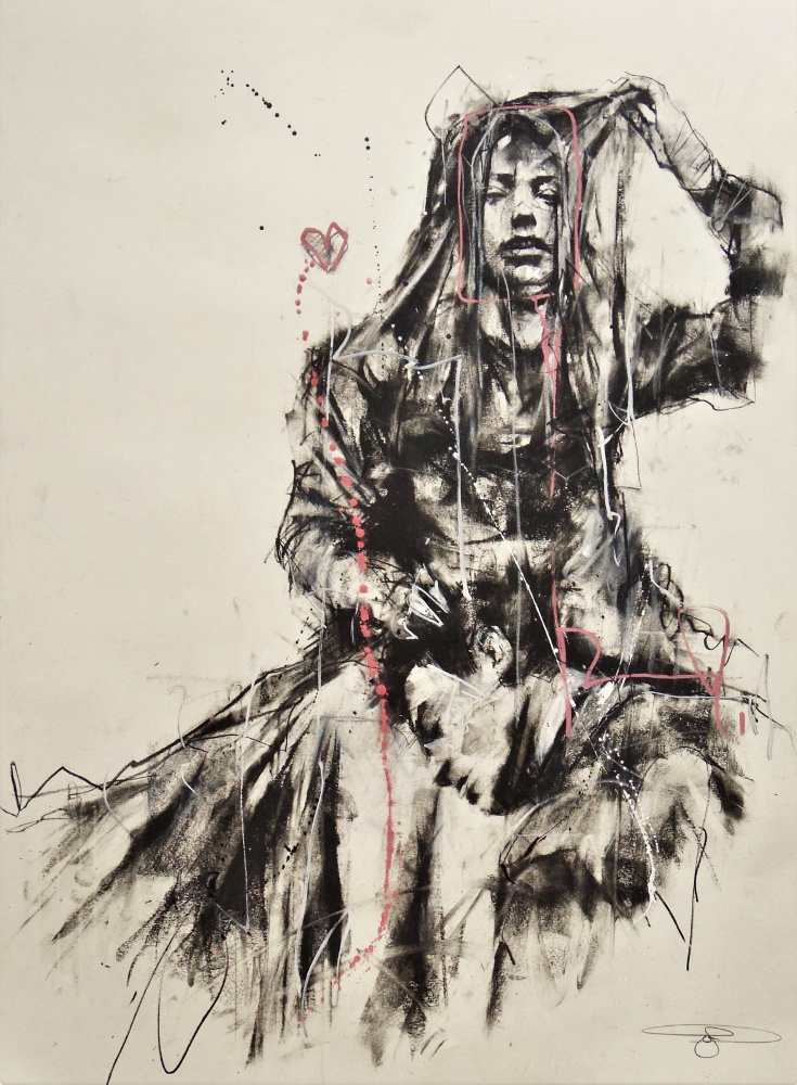 ‘the great escape’, conte, pastel and paint-pen on paper, 40 x 50 cm, 2018