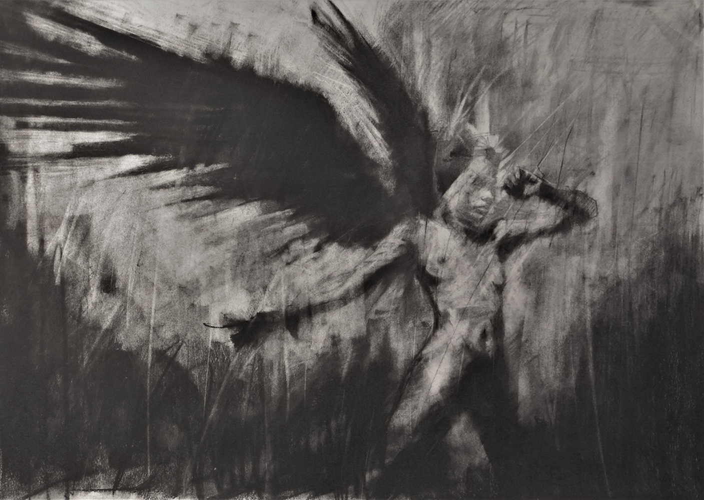 ‘your city lies in dust’, mixed media drawing, 50 x 40 cm, 2019