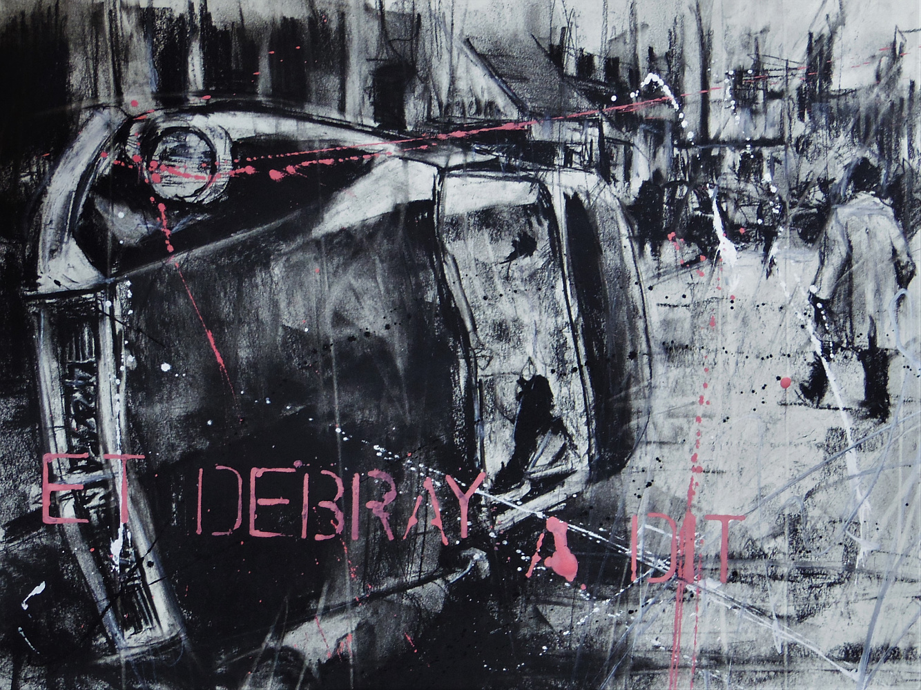 ‘Parisien history drawing (et Debray a dit)’ conte, pastel, paint and collage on paper, 29 x 39 cm