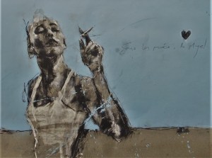 ‘Sous les paves, les plage’ conte, pastel and paint on paper, 50 x 65 cm