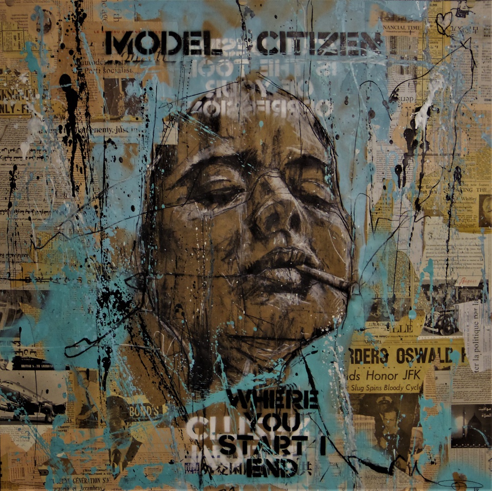 ‘slipping again’, mixed media on paper, 90 x 90 cm, 2018