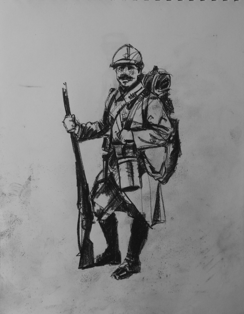 3753 armistice centenary drawing 42, compressed charcoal on paper, 27 x 33 cm 2018