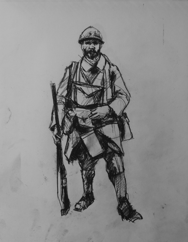 3786 armistice centenary drawing 7, compressed charcoal on paper, 27 x 33 cm 2018