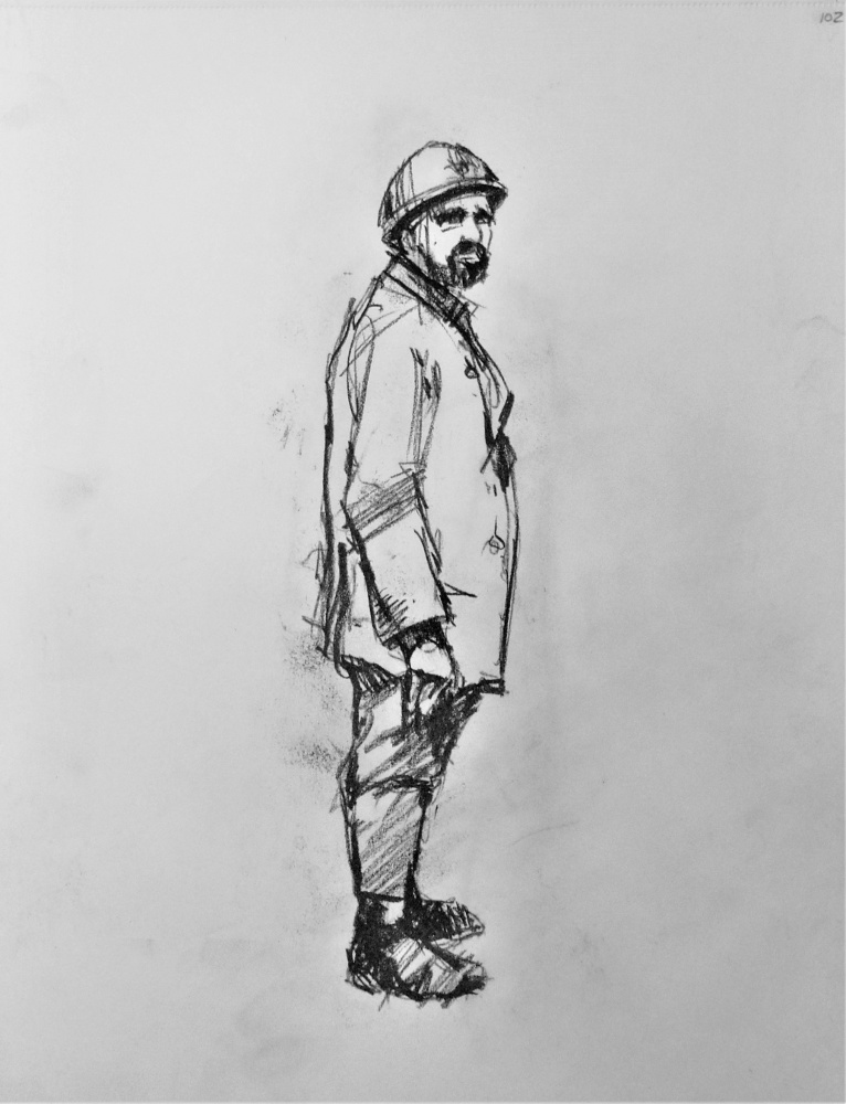 3823 armistice centenary drawing 102, compressed charcoal on paper, 27 x 33 cm 2018