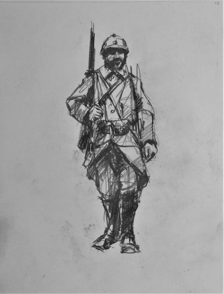 3833 armistice centenary drawing 93, compressed charcoal on paper, 27 x 33 cm 2018