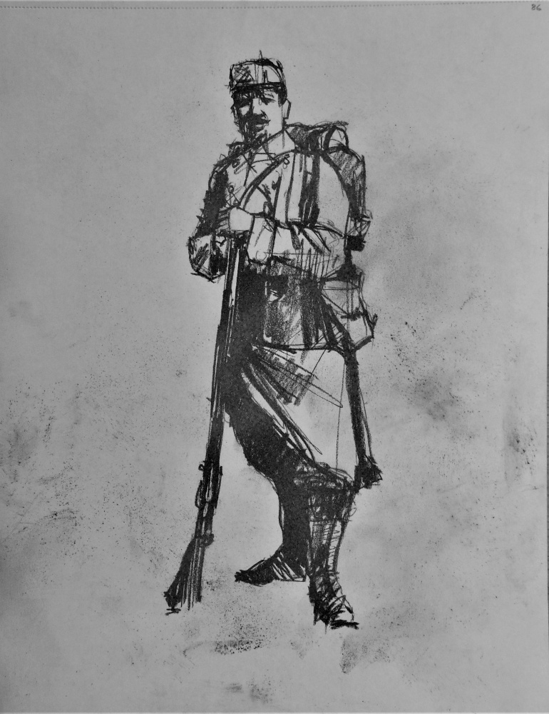 3840 armistice centenary drawing 86, compressed charcoal on paper, 27 x 33 cm 2018