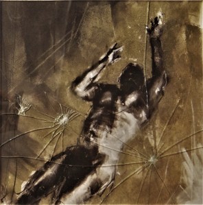‘imaginary self-portraits at the funeral of the imagination (into mythic identity)’, mixed media drawing, 23 x 23 cm, 2018