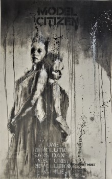 ‘before it kicks off’, mixed media drawing, 60 x 90 cm