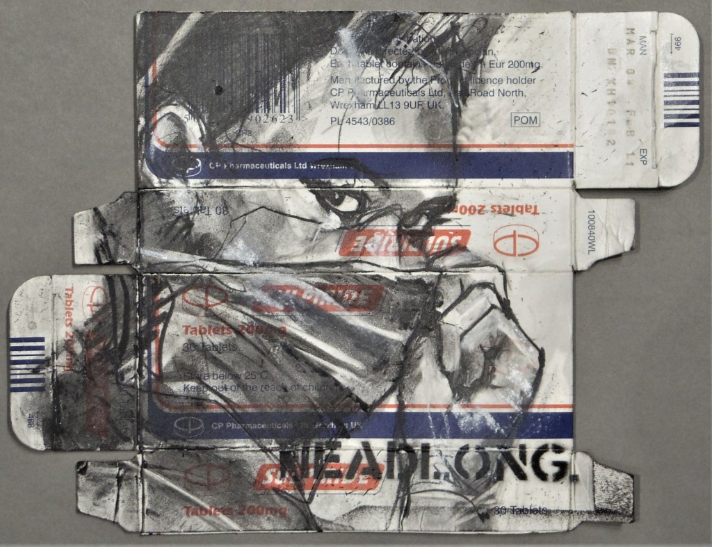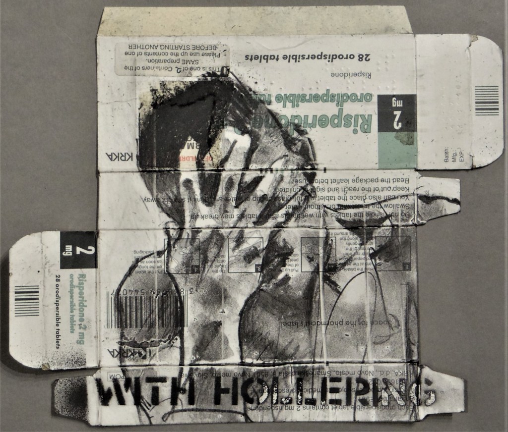 A theme for an exhibition in 2008 that took as a starting point my personal history dealing with my own mental health. Well, I recently discovered some packaging that was going to play a part in that exhibition but the work was never finished. So, I finished it, a dozen years on. Here it is…
