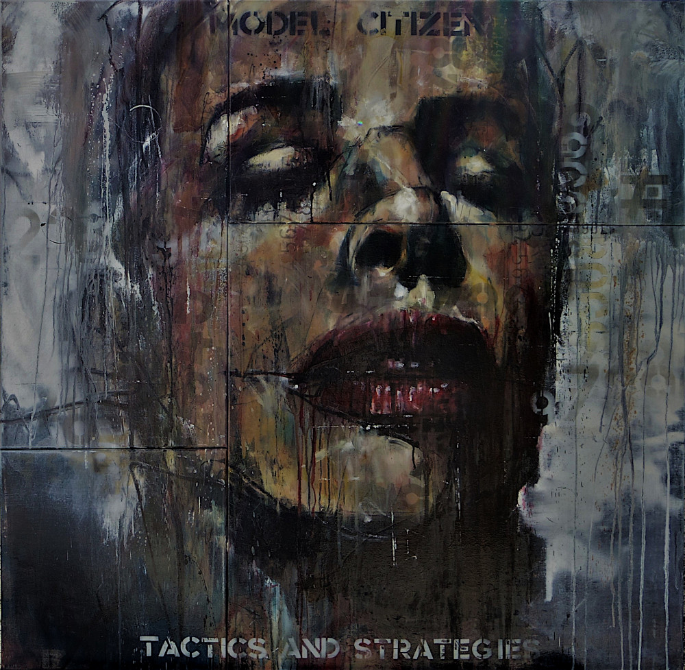 ‘stand back, come forward as demanded (painting for Paula)’, 120 x 120 cm, oil on canvas (4 panels), 2022