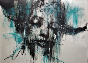 ‘Bring Me the Head of the Preacher Man’, mixed media drawing, 100 x 150 cm 2020