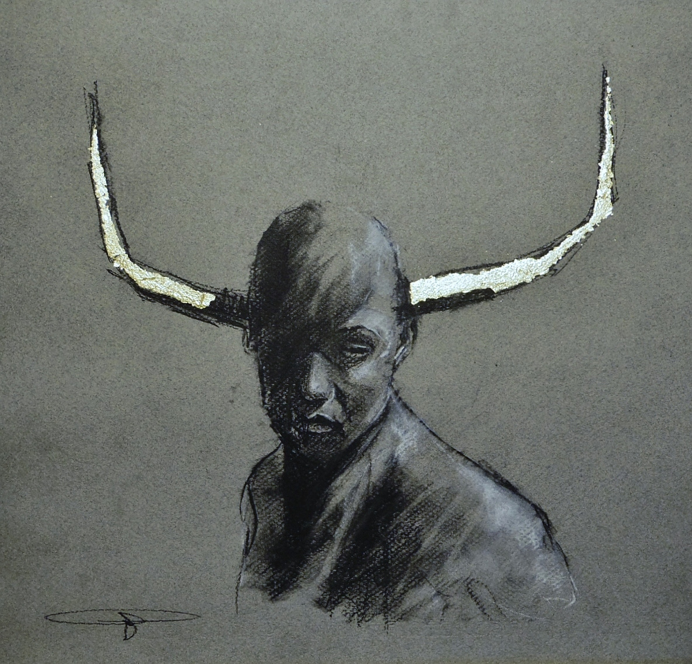 ‘grace under pressure’, conte and gold-leaf on paper, 30 x 30 cm, 2017