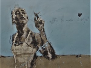 ‘sous les paves, les plage’, conte and spraypaint on paper, 50 x 65 cm, 2017