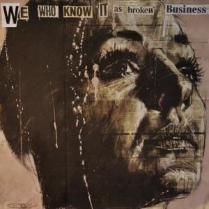 ‘we who know it as broken business’, conte and spraypaint on newsprint, 50 x 50 cm, 2017